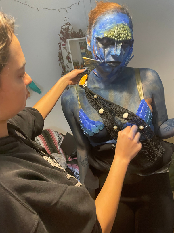 I worked as the makeup designer, designing and applying the siren SFX.